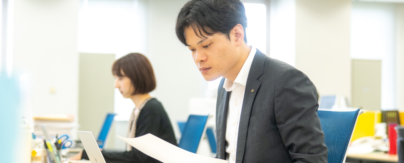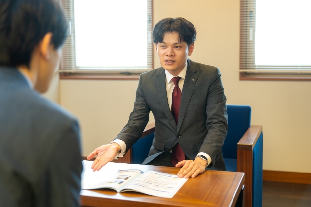 東日本業務部の仕事は、信用金庫様とより強固なパートナーシップを築くこと。そのために、東日本地区の信用金庫様を訪問し、共済代理店契約の手続きや、職員の方々への研修を行っています。